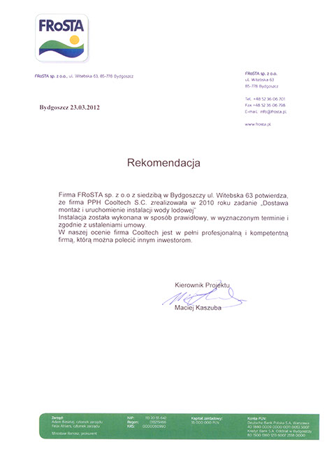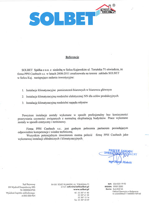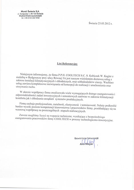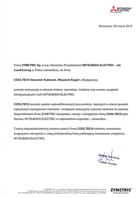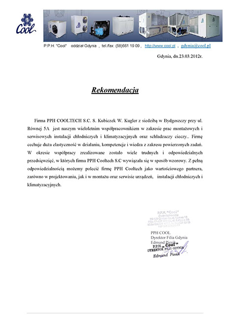 Cooltech ● ul. Szajnochy 2, 85-738 Bydgoszcz ● tel. 501 740 551 ● e-mail: firma@cooltech.bydgoszcz.pl