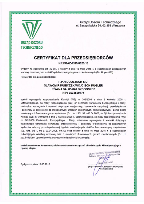Cooltech ● ul. Szajnochy 2, 85-738 Bydgoszcz ● tel. 501 740 551 ● e-mail: firma@cooltech.bydgoszcz.pl